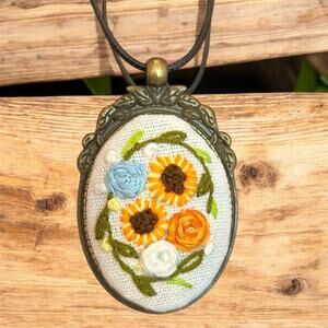 Sunflowers & Roses Handmade Embroidery Pendant