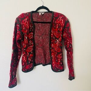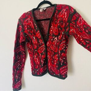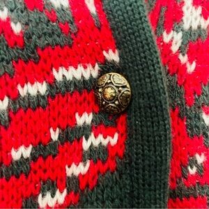 Sung Sport womans pure wool sweater size M red green thick button down old money