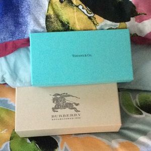 Burberry and Tiffany & Co. sunglasses boxes