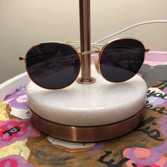 Round sunglasses with gold rim. Light weight. VERY dark.