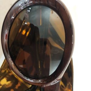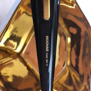 Rochas Uber well made and crafted sunglasses. Rich faux wood finish in a chocolate brown tone with gold hinge detailing. Wood around the lens is artistically optical in depth. Really beautiful work of art. In good condition with a slight worn off of color as shown in one of the pictures. Fabulous faux snakeskin hard case! Priced low to to slight flaw.
