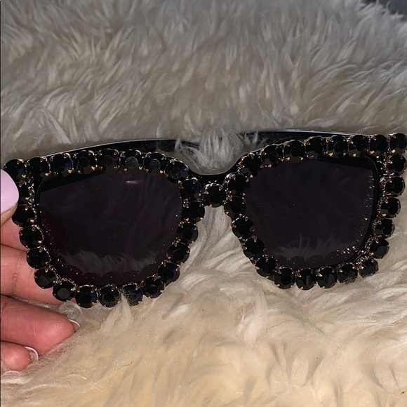 Black diamond studded shades. Good quality. No stones missing. NEVER WORN & comes with fabric black case and cloth cleaner.