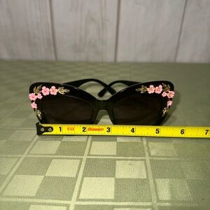 Polarized sun glasses. Has beautiful pink flower accents on the front and side. NWOT