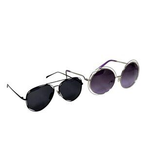 Sunglasses Black Blue Aviator Round Set Of 2 Summer Beach Fashion Accessories
