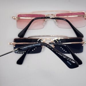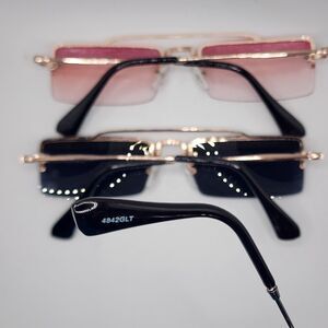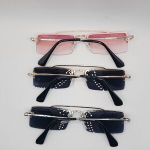 Sunglasses Glitter Eyelash Rimless Narrow Rectangular Hippie Shades Set Of 3