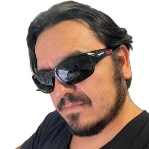 Sleek and sporty sunglasses designed for the active man. These sunglasses feature a streamlined black frame with a subtle red accent, offering both style and functionality. The dark lenses provide excellent UV protection, making them ideal for various outdoor activities. Perfect for driving, fishing, golfing, cycling, or simply enjoying a sunny day.