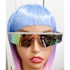 Sunglasses Women Purple Diamond Rimless Futuristic Shield Frameless bling