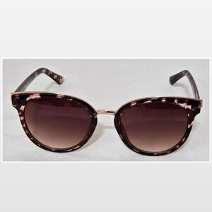 Sunglasses Womens OS Cat Eyes Round Brown Tortoise Shell Gold Accents