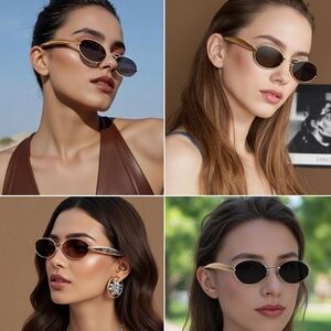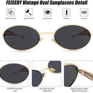 FEISEDY Retro Oval Sunglasses Women Men - Gold Metal Chunky Frame, UV400 for Driving & Daily Wear B0312