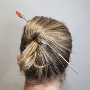 Infused with the hush of early morning and the shimmer of first light, Sunglow Drift is a hair stick that feels like a spell of serenity. With swirls of peach, cream, and pale gold, this resin-topped relic glows like sunlight caught in a daydream—soft, radiant, and effortlessly graceful.