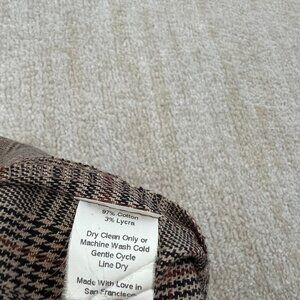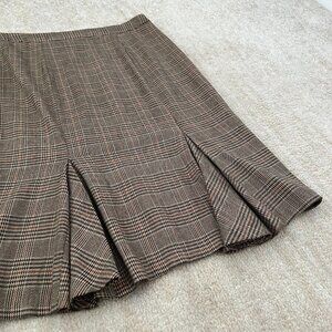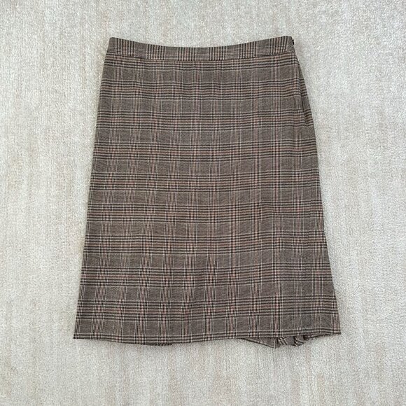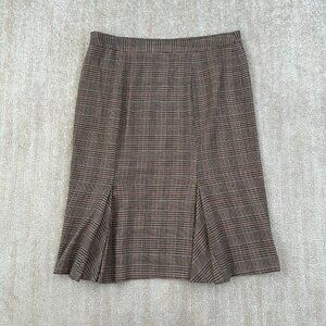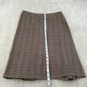 A cotton blend midi skirt with plaid mermaid back hem. Not lined. Fabric has some stretch. Has side zip closure