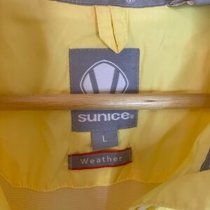 Women’s size L Sunice weather yellow windbreaker. Full zip front, yellow front with white back panels. Lightweight, durable, spring, adventure, outdoors. Excellent condition with no marks or damage. (A2)