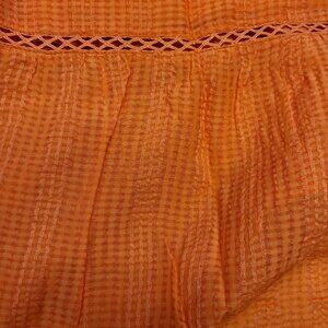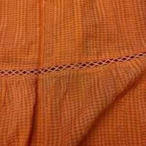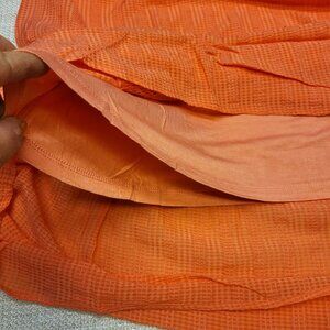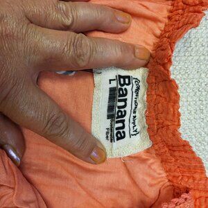 Enhance your wardrobe with this vibrant sunkist orange Conditions Apply Banana dress. Its ruffled straps add a touch of femininity while the breathable fabric ensures comfort and style. Look stunning on the beach.
