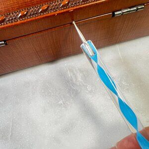 Very pretty box with tiny scratches on back. See picts. Otherwise, beautiful condition,