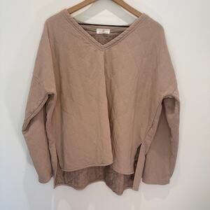 Sunland17 Quilted Oversized Pullover Top Size M/L Taupe V-Neck