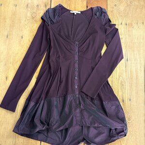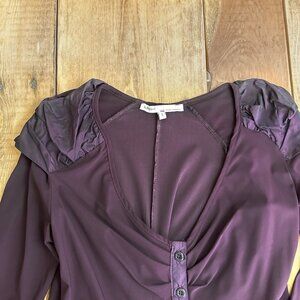 Sunlight Paris Purple Tunic Formal Top Eggplant Ruche Shoulder T1