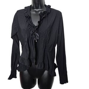 Sunlight Paris Jacket Lagenlook Open Front Black Ruffle Size 2 Medium