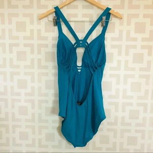 Sunn Lab Swim Blue Sexy Strappy Back One Piece Swimsuit L NWOT