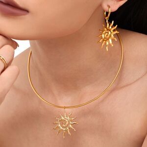 Bohemian sun necklace earrings in 18k gold plated hardware