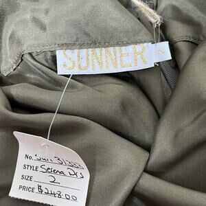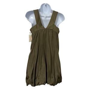 Sunner 100% Silk V Neck Boxy Mirco Mini Dress Size 2 Green Goblincore Fairy NWT