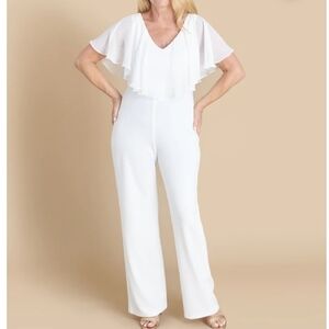 The Sunny 2.0 jumpsuit is feminine, flirty, and oh so chic. The V-neck chiffon capelet flounce and floor length, straight leg pants make Sunny 2.0 both figure flattering and elongating. Whether you're looking for a white jumpsuit for your wedding or for another special occasion, Sunny 2.0 can easily be dressed up or down depending on the dress code. This one-piece will quickly become your new go-to jumpsuit when you need to dress up. And if you’re the bride-to-be, this jumpsuit is perfect for any pre-wedding festivities or reception dinner change so you can dance the night away in style and comfort.
