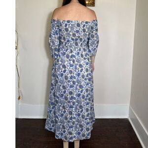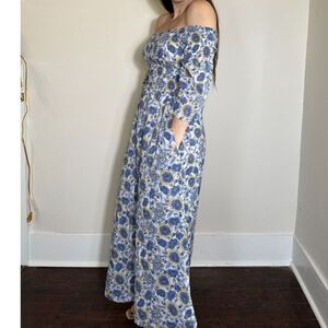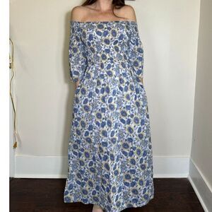 Sunny Bliss Blue Multi Floral Print Off-the-Shoulder Maxi Dress Size Small