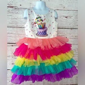 Sunny Fashion Birthday Girl Colorful Ruffled Dress.