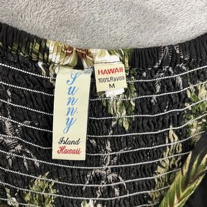 Sunny Island Hawaii Hawaiian Butterfly Dress Floral Palms Black Smocked Sz Med
