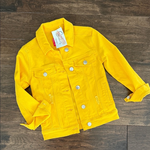 Add a pop of color to your child's outfit with this vibrant yellow jean jacket from Sunny Kids. Designed for style and comfort, it's perfect for any occasion.