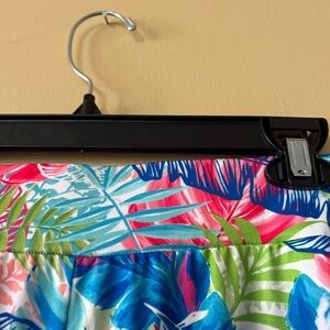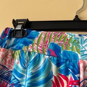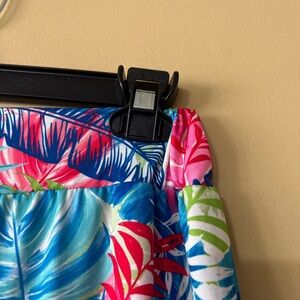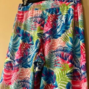 Embrace a vibrant summer vibe with this Sunny Leigh pants,featuring a bold tropical print in blue and pink hues. The wide leg design offers a relaxed fit, perfect for warm weather occasions. Crafted from lightweight fabric, it ensures comfort and effortless style.