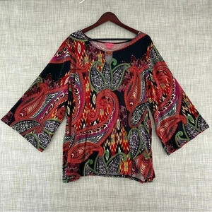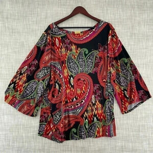 Sunny Leigh Boat neck Keyhole Amoeba print Pullover Wide Sleeve Blouse 3X 8257/11 b