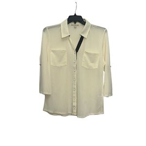 Sunny Leigh Button Front Mesh Blouse Size Large In Pearl White Roll Tab Sleeve