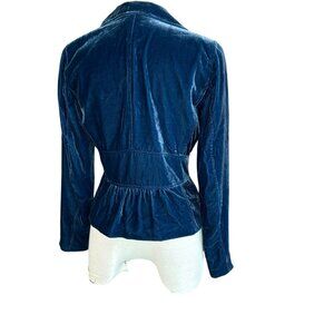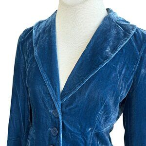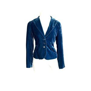 Sunny Leigh Dark Teal Blue Velvet Fitted Blazer Jacket Size 4