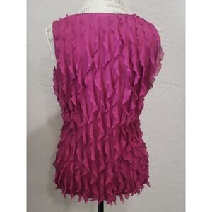 Sunny Leigh Petite Purple / Pink Ruffle Short Sleeved Blouse Top. Excellent preloved condition.