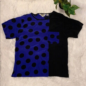 I love polka dots....don’t you? 💕 This beautiful Silk black and blue polka dot blouse is in great condition.