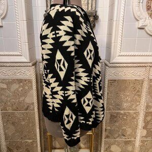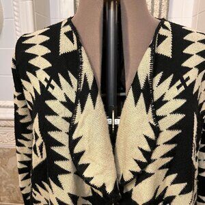 Sunny Leigh. Size Large. Aztec Open Front Acrylic Black Tanish Cardigan. B94