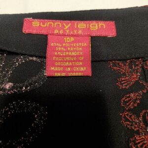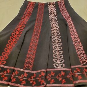 Sunny Leigh Skirt Women's 10 Petite Black Multicolored Embroidered Flare Midi.