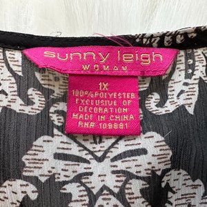 Sunny Leigh Tunic Cover Up Boho Beach Pool Flowy Black Gold Coins Resort Wear 1X