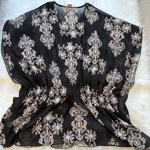 Sunny Leigh 1X Boho Flowy Tunic Beach Pool Cover Up w/Gold Coins in Black Pattern - Resort Wear