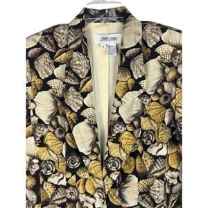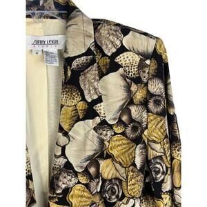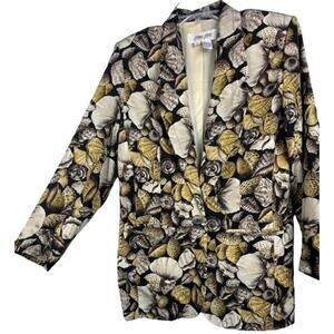 Sunny Leigh Vintage Silk Sea Shells Print Pockets Button Front Blazer Size Small