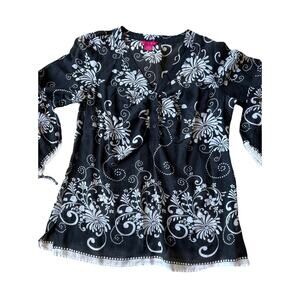 Sunny Leigh Womens L Coverup Tunic Silk Blend 3/4 Sleeve Floral Beach Boho VTG