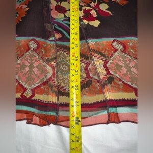 Sunny Leigh brown floral 100% silk Midi Skirt Pleated Casual lined