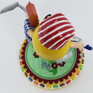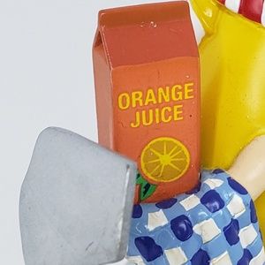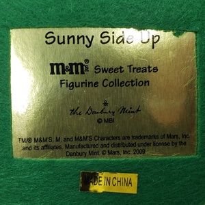 The Danburry Mint M&M's Sweet Treat Figurine Collection. Sunny Side Up - "I start my day with a smile!." slogan. Yellow peanut M&M holding skillet of eggs and bacon, orange juice, and spatula.