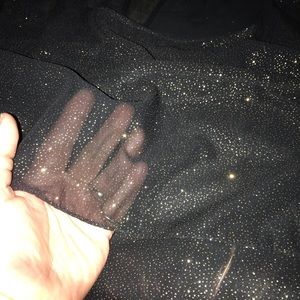 Sunny Taylor XL black metallic top gold threaded overlay at shoulder NWOT