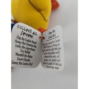 Sunny The Cuckoo Bird plush from 1998 is a nostalgic collectible from General Mills' Breakfast Pals series. This adorable bean bag toy is perfect for cereal enthusiasts and plush collectors alike.