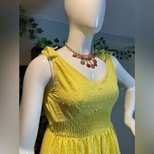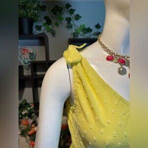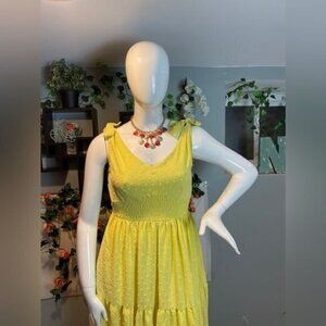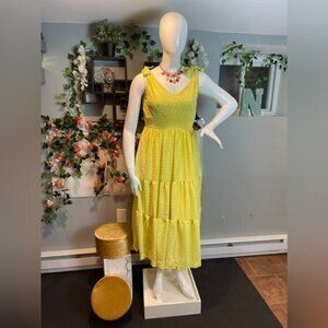 Sunny Yellow Swiss Dot Tie Shoulder Tiered Maxi Dress Size M RefJ011
