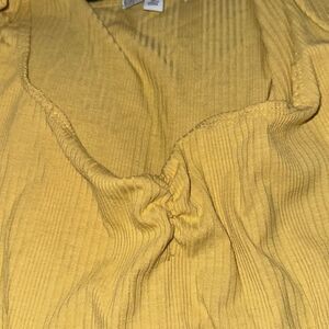 A vibrant yellow tank top with bow straps, sinch design on front. Comes from a smoke free home.