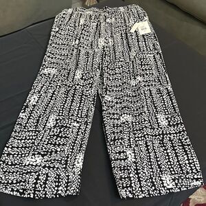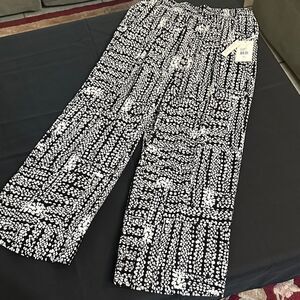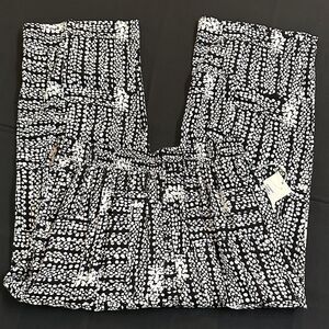 Stylish black and white women's pants featuring a modern pattern. Perfect for any occasion. The flowy linen cotton fabric is very comfortable. A great addition to your wardrobe. Brand new with tags attached.