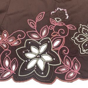 Sunny Leigh Brown and Pink Embroidered A-Line Skirt MI0032