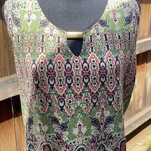 Sunny Leigh top tunic sleeveless orange green white geometric XL FIRM on PRICE